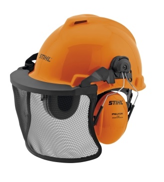 Hjälmpaket innehållande hjälm, hörselkåpor och visir.