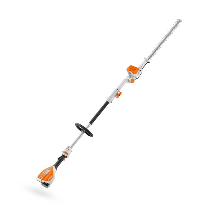 Stihl HLA 56 är en lätt batterihäcksax på stång för klippning av höga eller mycket låga häckar. Droppformad kniv som kan vinklas mellan - 45° upp till + 90°.